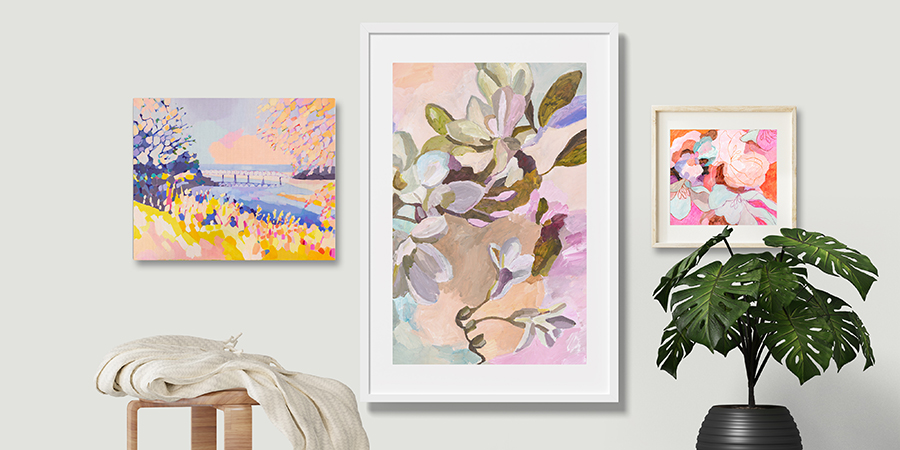 Jade Fisher is an artist based in Gerringong on the beautiful south coast of NSW. She is inspired daily by the natural beauty of her surrounds, with botanicals being her current obsession. Her pieces combine simplistic florals with playful patterns and abstract forms in the background. Her technique is to paint layer upon layer until each section of the painting has pleasing colour combinations and textures that delight.