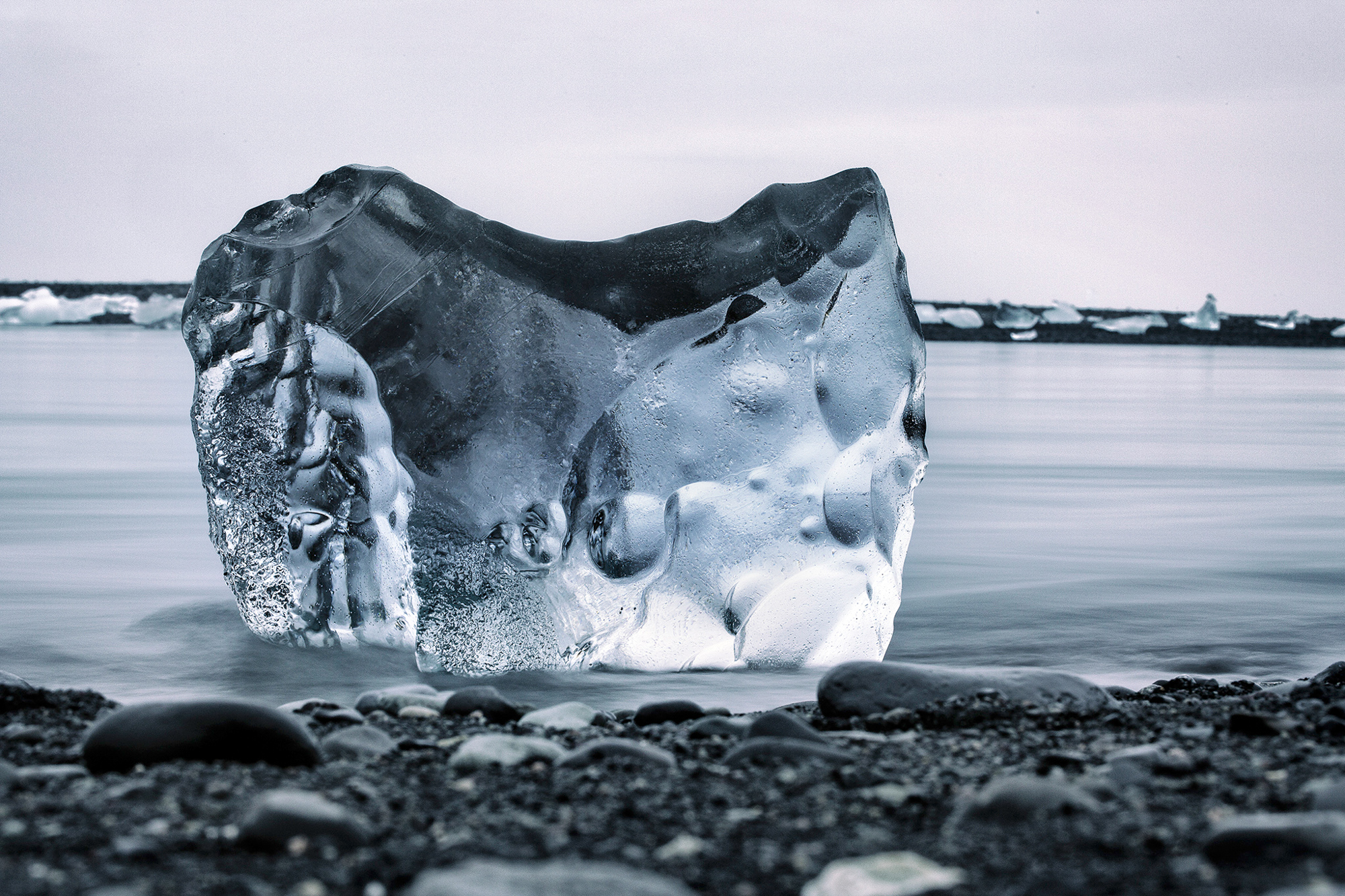 I was captivated by the faceted colours of this particularly beautiful block of ice, one of thousands broken off from the main glacier, and now floating out to sea from the lagoon.