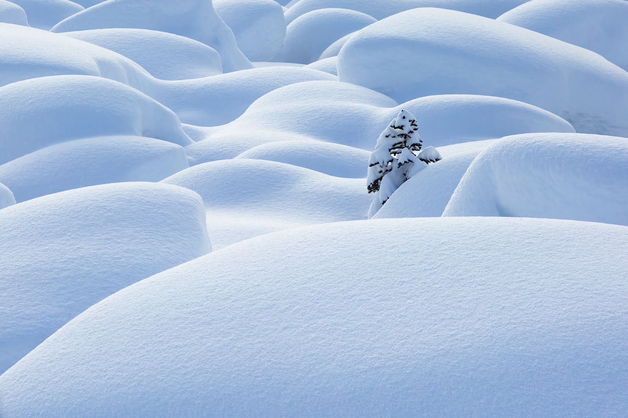 Alone among snow-covered boulders, this lone pine seemingly has the place to itself. I love the lines, the contrasts and the simplicity of this image.