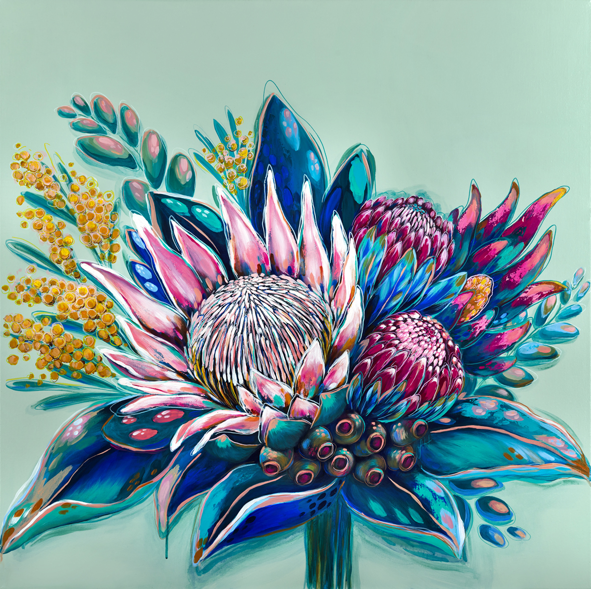 This work was a re connection for me, it’s been such an intense few months. So much noise, hustle, worry… I needed to just ‘be’ – sometimes listening to music, sometimes in complete silence.. and reconnect with my creativity. Ahh how I missed the absolute soul-fueling immersion of just me, a canvas and some paints. ‘My happy place’ is the result of this painting session, I hope it makes you happy too.