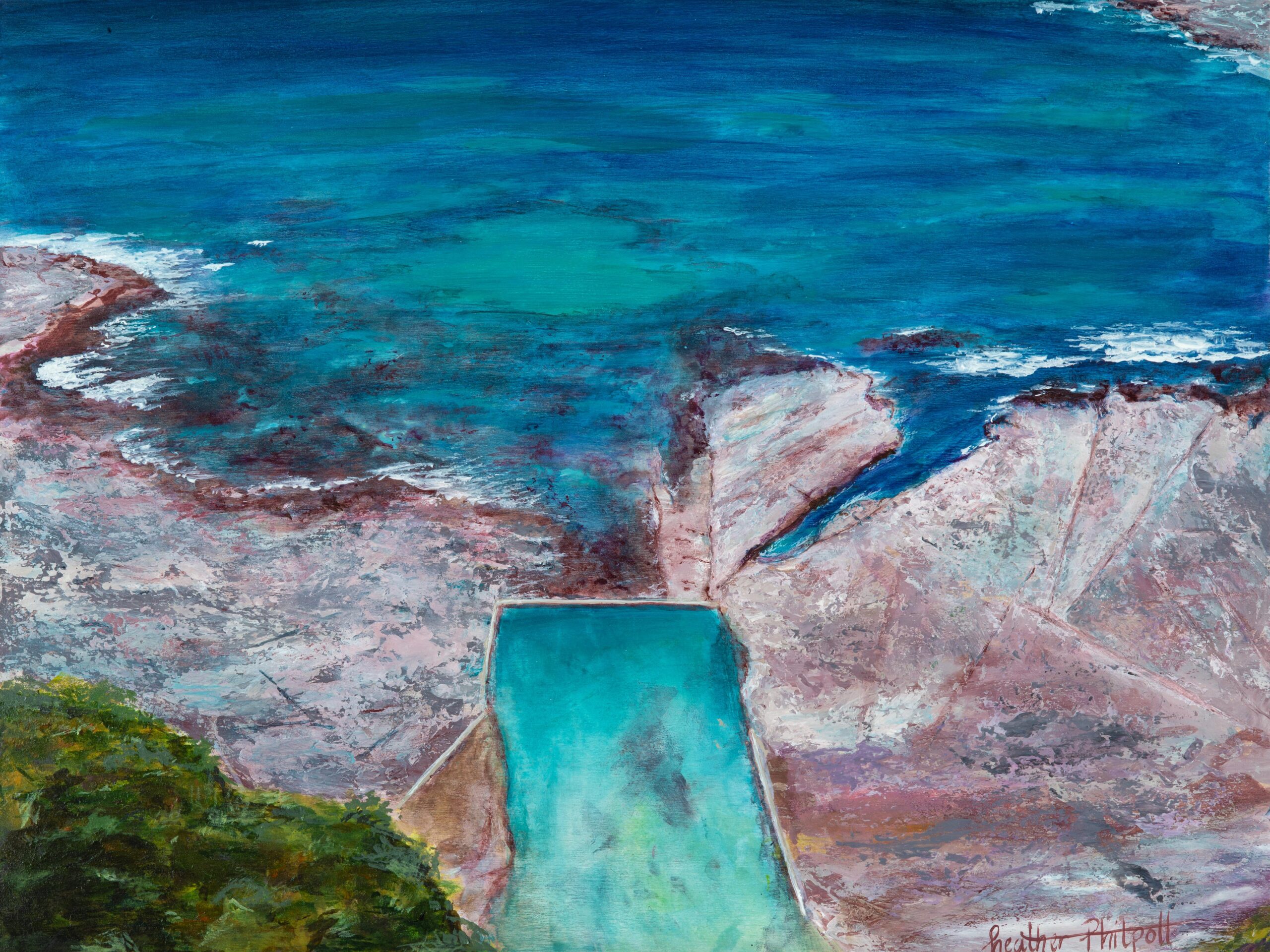 This is a bird’s eye view of the Boat Harbour and my favourite swimming spot … The Crevice. Inspired by the talented photography of Jeff Sheppeard.