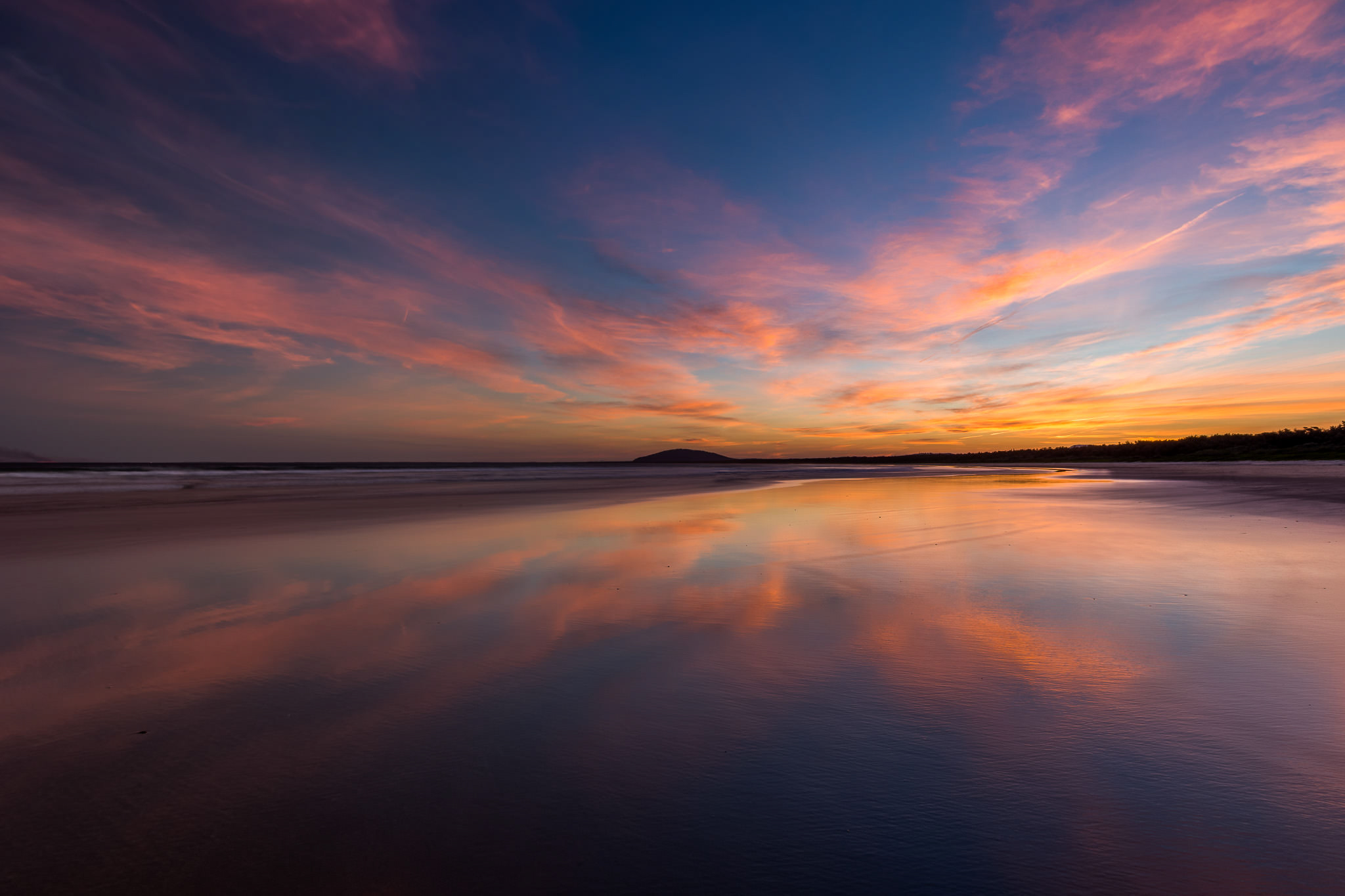But, from an artist’s point of view, you simply can’t beat the winning combo of beach sunsets and reflections in the wet sand – all with Mt Coolangatta looming in the distance.