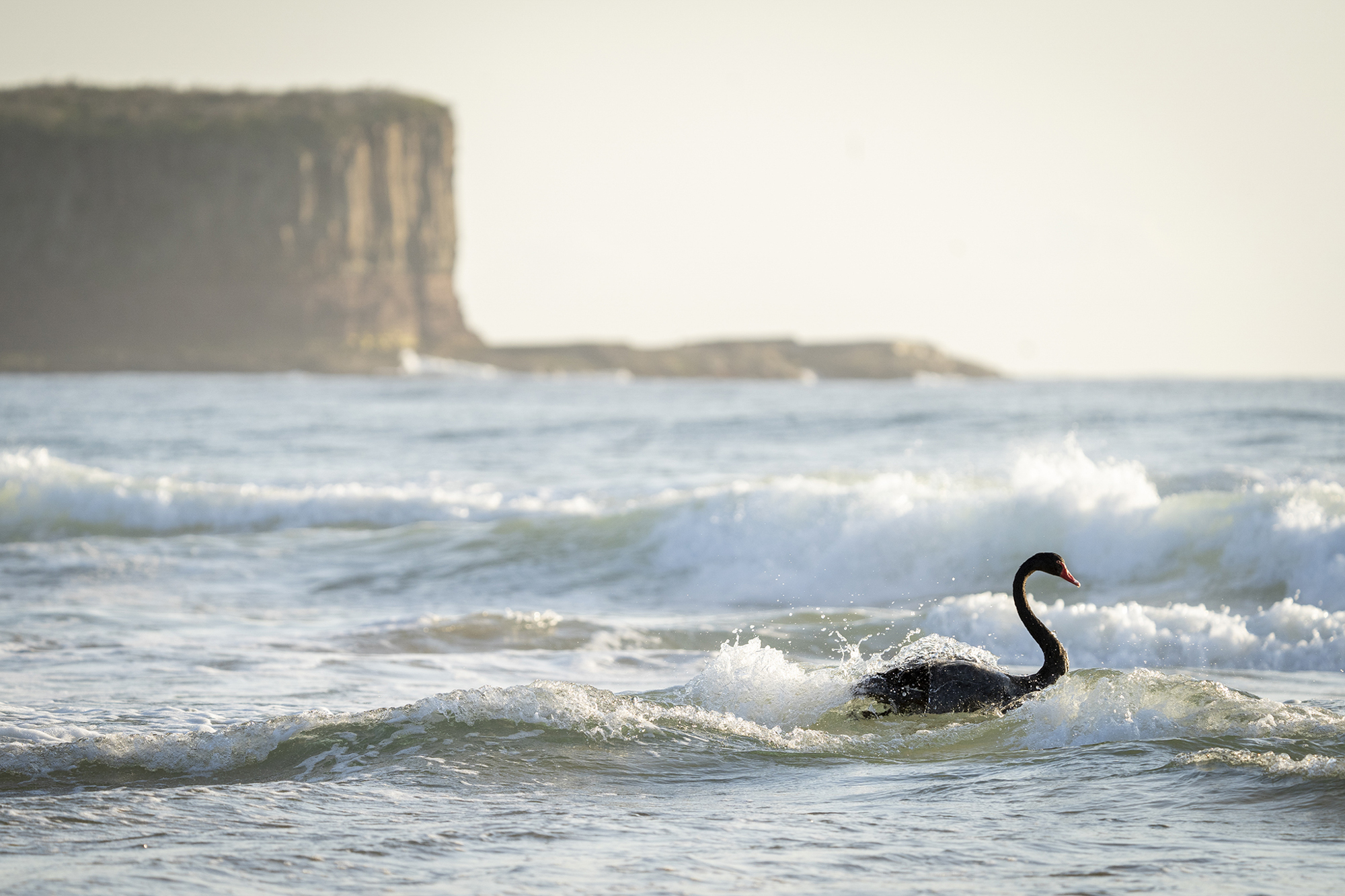 I’d not seen a surfing swan before, so when I came across this one early one morning I watched in fascination, and captured it in serene action as it cut through the waves..