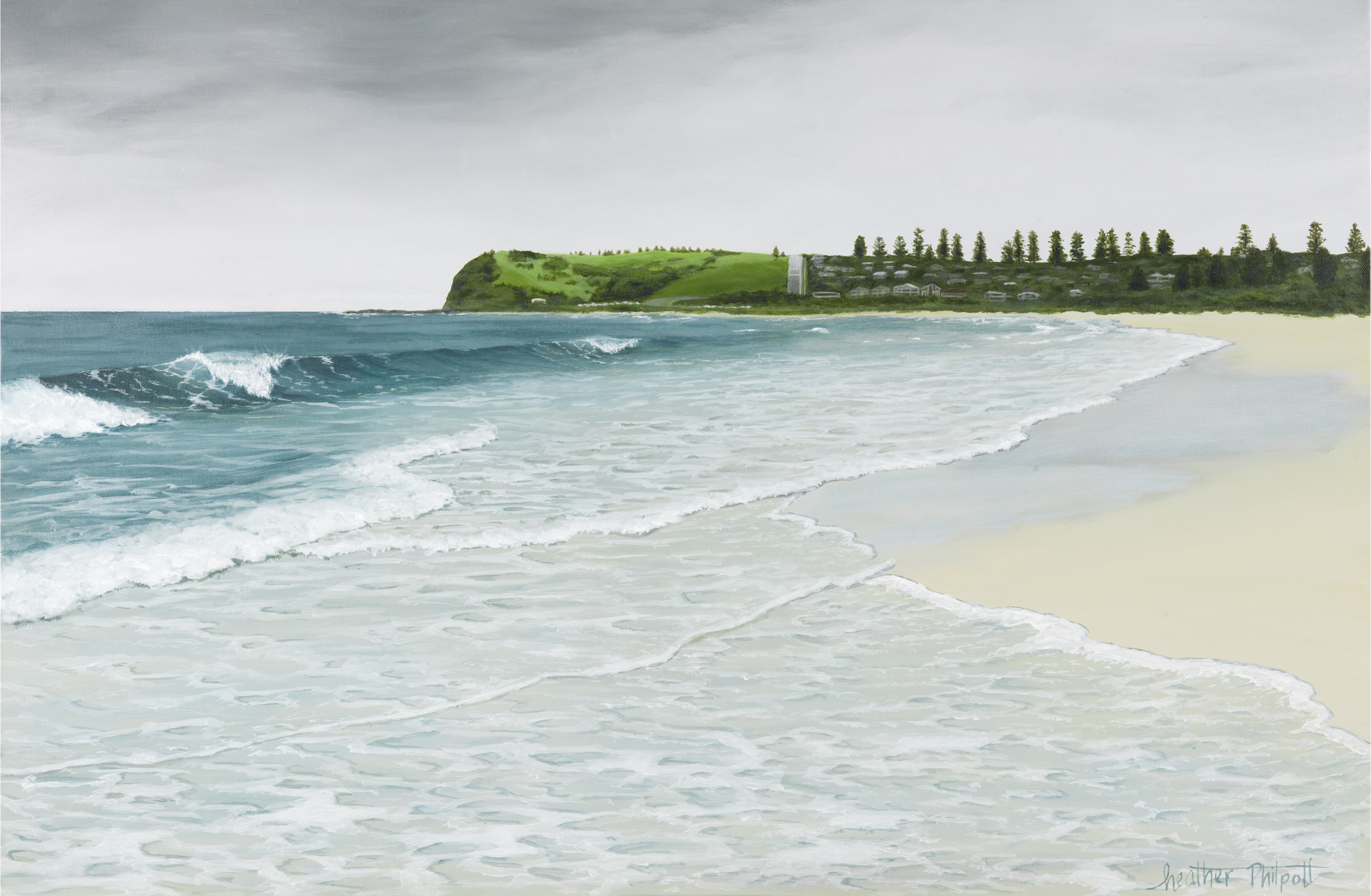 You can almost feel the sea foam wrapping around your sandy toes when you view this piece. This is my local beach playground in Gerringong. I love the iconic row of Norfolk Pines on the headland.