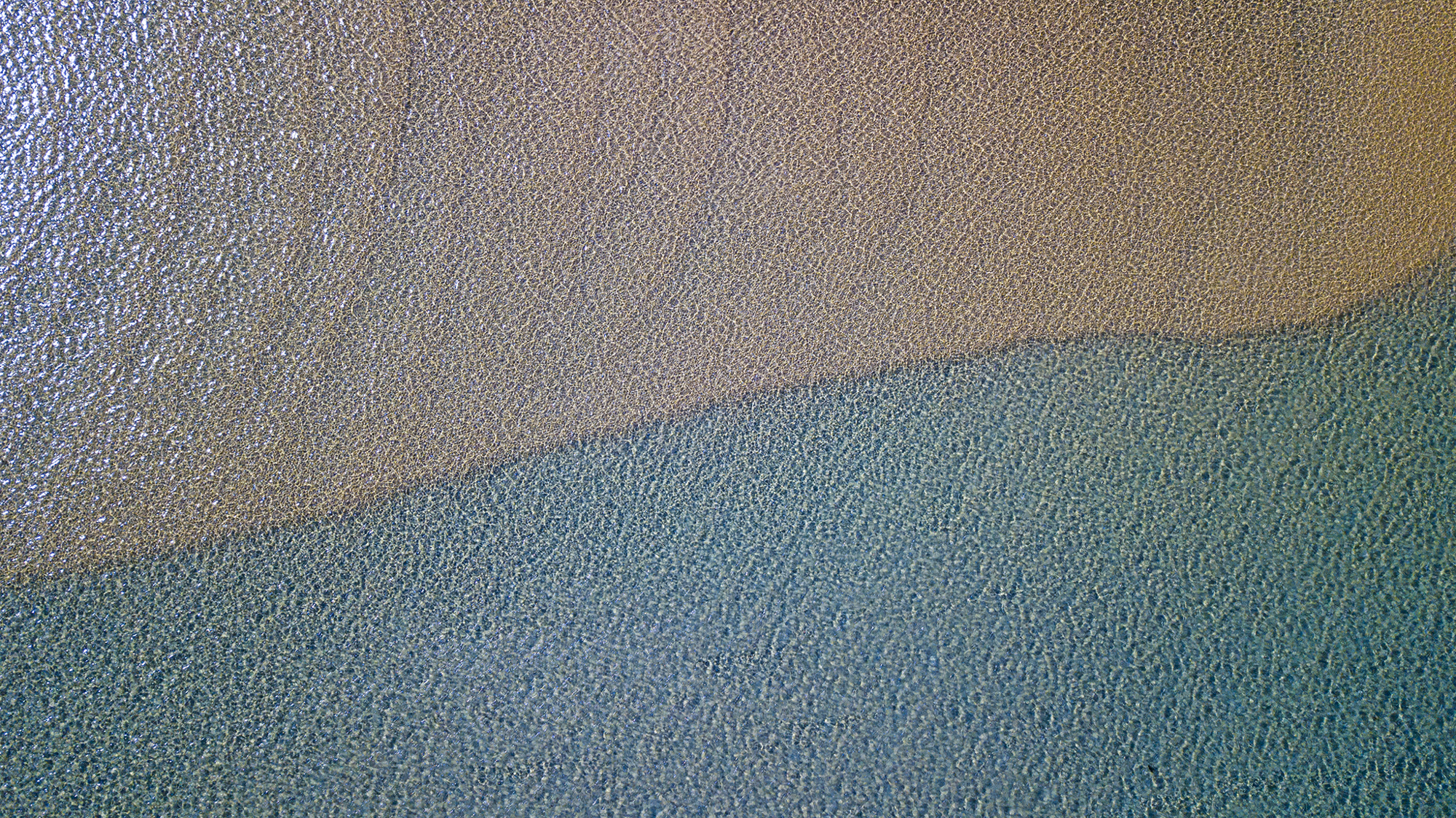 A single, simple line intersects this aerial composition, differentiating the depths and highlighting shapes, textures, light and water colours.